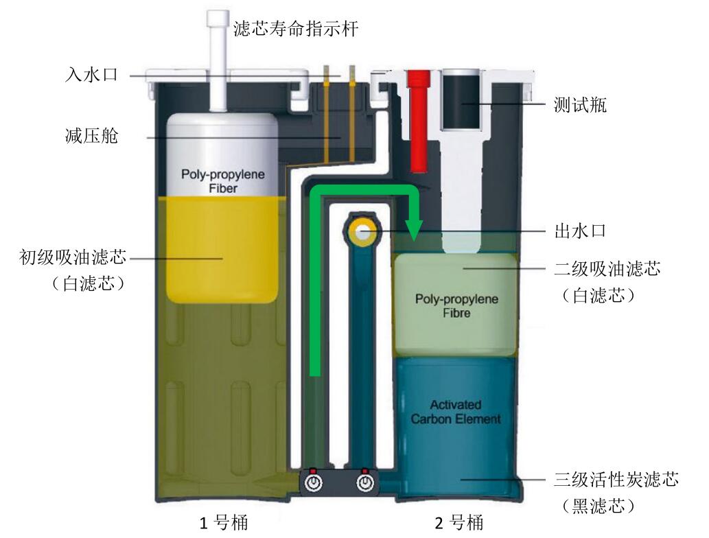 老式的油水分离器不仅分离效果差、分离慢,而且体积大、需要经常维护,沉淀分离罐还会促成有害细菌的滋生、产生不愉快的气味,形成二次污染。